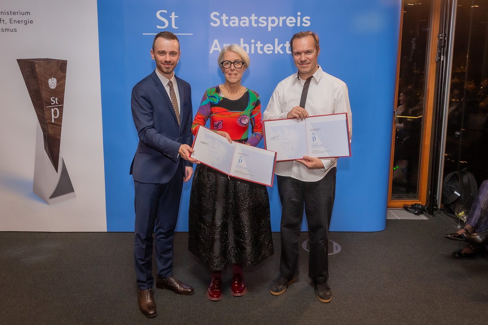 Am 5. November 2025 wurde der Staatspreis Architektur 2025 am Erste Campus in Wien vom Bundesministerin für Wirtschaft, Energie und Tourismus an die Preisträger:innen überreicht.