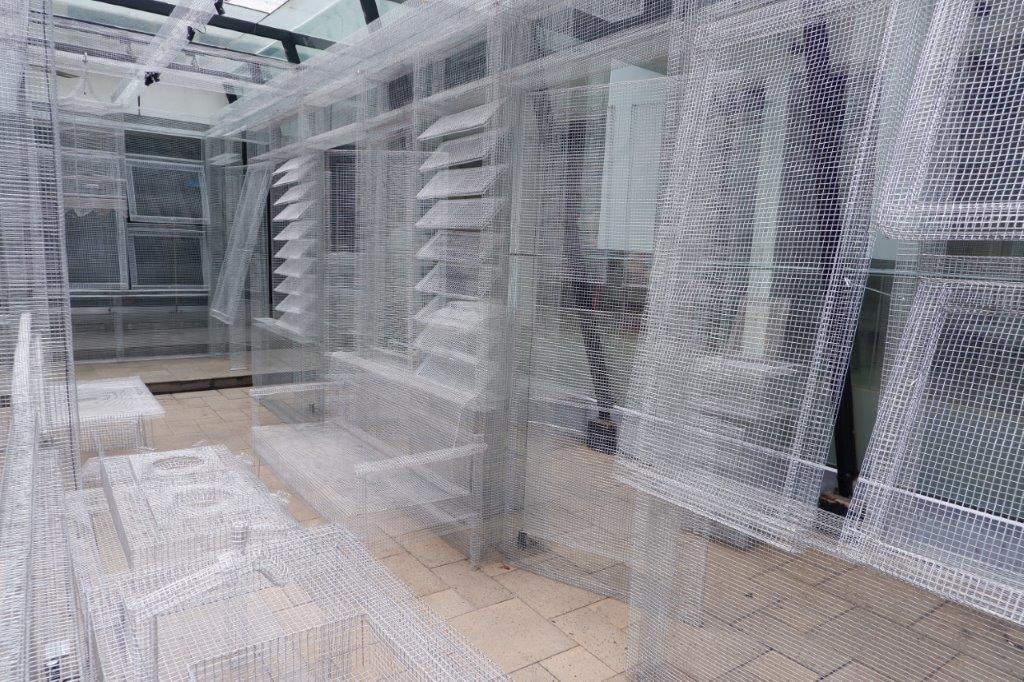 Die indonesische Künstlerin Dea Widya beschäftigt sich mit der veränderten Wahrnehmung und Nutzung unserer Wohnumgebung durch die Pandemie, sowie der Innerlichkeit, der psychologischen Beziehung zwischen der Bewohner:in und dem Raum, in dem diese lebt. Dea Widya erforscht die Idee der Innerlichkeit, um das Unheimliche in unserem Haus zu finden. Das Unheimliche bezieht sich auf etwas Verborgenes, das aber irgendwie seltsam vertraut ist. Sie benutzt die Miniatur, das Modell, um eine neue Welt zu eröffnen, um eine Distanz aufzubauen, um sich selbst zu erforschen, aber auch um eine Flucht ins Imaginäre zu ermöglichen. Auf diese Weise schafft Dea Widya eine beunruhigende räumliche Verdoppelung der Realität. Mit den Miniaturen stellt Widya die Traumata und das Chaos des Lebens in winzigen, geschlossenen, statischen Räumen nach. In einer performativen, ortsspezifischen Installation schließlich ermöglichen diese Miniaturen das Eintauchen in eine bestimmte räumliche Erzählung.