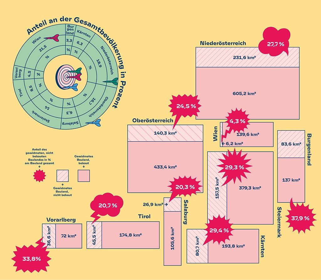 Es ist erstaunlich, wie oft diese Tatsache wiederholt werden kann und trotzdem noch „Aha“-Erlebnisse hervorruft. Die Zersiedelung des Landes wird schon seit Jahrzehnten angeprangert. Mittlerweile könnten alle Österreicher*innen in bereits bestehenden Einfamilienhäusern untergebracht werden, und trotzdem wird weiter Bauland gewidmet, werden neue Einkaufszentren auf der grünen Wiese und Chaletdörfer in den Alpen errichtet. Die fortschreitende Versiegelung trägt zur Klimakrise bei und gefährdet die Ernährungssicherheit. Die Hortung von und Spekulation mit Grundstücken verteuert das Wohnen und führt zu einer schleichenden Privatisierung des öffentlichen Raums. Vielerorts entstehen Wohnungen, deren Funktion nicht die eines „Heimes“ ist, sondern einer Kapitalanlage, die auch ungenutzt ihren Wert steigert. Dieser sorglose oder rein kapitalgetriebene Umgang mit der Ressource Boden hat in den vergangenen Jahrzehnten Gestalt und Funktion unserer Städte und Dörfer massiv verändert.