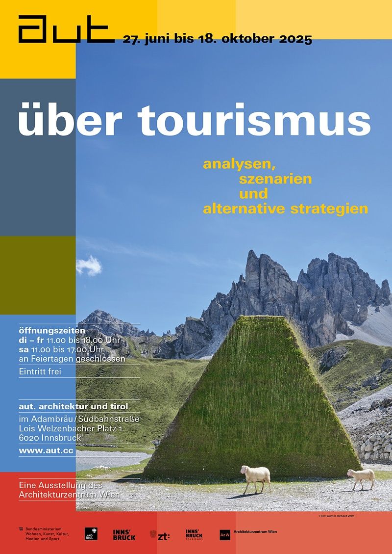 Die Ausstellung „Über Tourismus“ des Architekturzentrum Wien beleuchtet – aufgeteilt in acht Kapitel – zentrale Aspekte des Tourismus wie Mobilität, Städtetourismus, Wechselwirkungen mit der Landwirtschaft, Klimawandel, die Privatisierung von Naturschönheit oder den Wandel der Beherbergungstypologien und geht der Frage nach, ob und wie Tourismusentwicklung geplant wird. Anhand von anschaulichen Illustrationen, Beispielen und Datenmaterial werden Phänomene thematisiert wie Kurzzeitvermietungsplattformen, „Kalte Betten“, der Vermögensaufbau durch Ferienimmobilien oder die sinkende „Tourismusgesinnung“ bei der Bevölkerung aufgrund der ausufernden Wohn- und Lebenshaltungskosten.