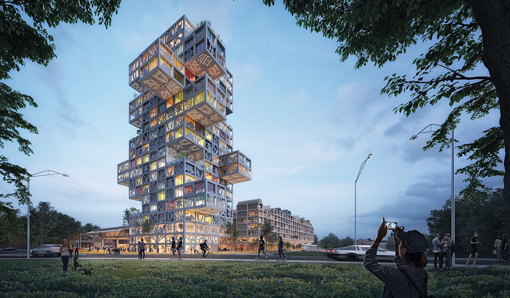 types into one compact volume, which we called “The Silodam”, and 15 years later, a close-knit and diverse community still calls it their home. Our experiments took us to a possible redefinition of high-rise typology with our designs for the Taipei Twin Towers and Vanke Headquarters in Shenzhen, where we replaced the traditional single-volume skyscraper with vertically stacked, dynamic, and diverse spatial elements.