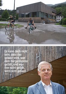 Als erstes konkretes Projekt wurde die gesamte Dorfstraße mit allen Hauszugängen und öffentlichen Plätzen erneuert, der Ort damit freundlicher und der Autoverkehr entschleunigt. Mit dem „Alpineum“ (Planung: Christiane und Erik Holter), einer neuen Form von Heimatmuseum, wurde 1998 ein erster Schritt in Richtung moderner Architektur getan, 2002 folgte die „Hösshalle“ von Riepl Riepl Architekten, 2009 das Feuerwehrzentrum (Planung: Robert Oberbichler).