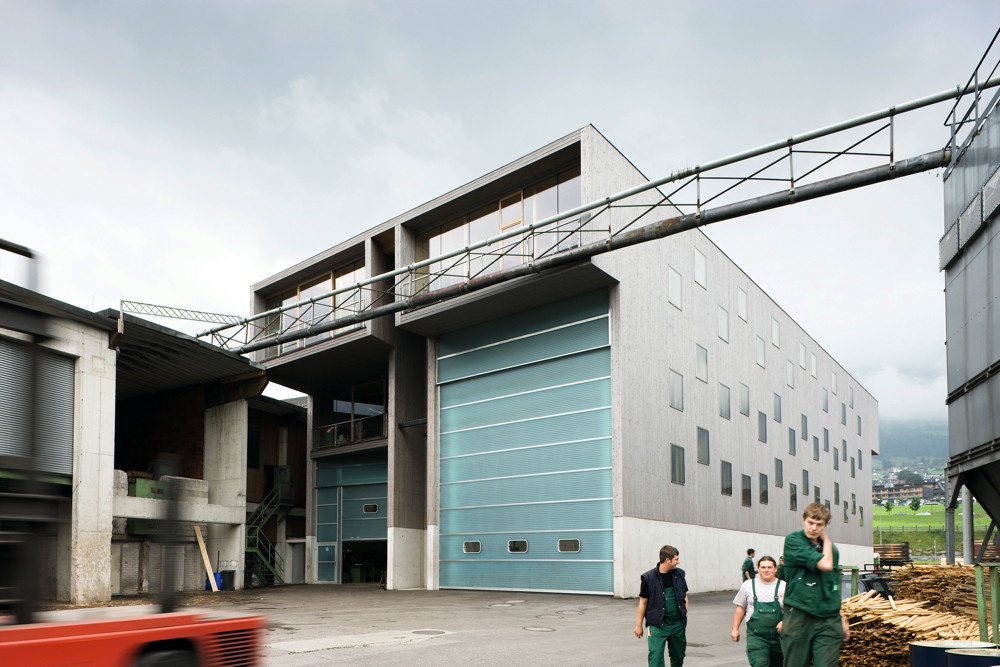 Holz ist – natürlich – auch das Hauptthema dieses Werkstattgebäudes, das von tatanka ideenvertriebsgesmbh – Wolfgang Pöschl, Joseph Bleser und Thomas Thum – konzipiert wurde. Auf einem in Massivbauweise ausgeführten Untergeschoss sitzt ein teilweise betoniertes Erdgeschoß, darüber drei in Holzmassivbauweise ausgeführte Obergeschosse. Das Gebäude reizt durch seine Größe und seine unregelmäßige Form die statischen Möglichkeiten des Brettsperrholzes aus und versteht sich – auch in ästhetisch-atmosphärischer und akustischer Hinsicht – als ein nur bei dieser speziellen Nutzung so ausgeprägt möglicher "Selbstversuch".