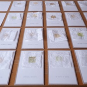 AusstellungMaria Lamott, eine in der Schweiz lebende Architektin, war im Dezember 2021 als Artist in Residence in Krems. Während dem plötzlich verhängten Lockdown unternahm sie in der klirrenden Kälte vier ausschweifende, tagesfüllende Spaziergänge in den Westen, Osten, Süden und Norden von Krems. Sie sammelte Blätter, Blumen, Erde oder Steine deren Farben ihr für die Landschaft und die gebaute Umwelt der Region charakteristisch erschienen. Die gefundenen Materialien zerrieb sie vor Ort zu Pigmenten, die sie auf Papier übertrug. So entstand eine farbliche Palette der Landschaft.
