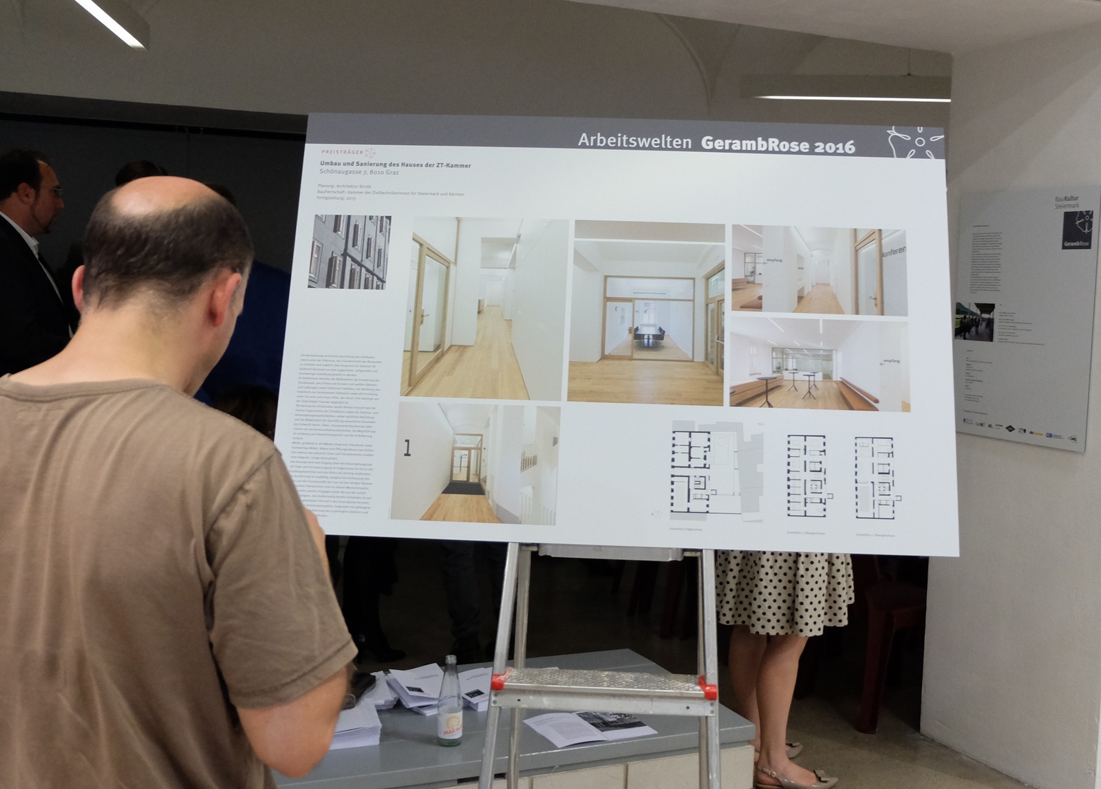 AusstellungDie GerambRose wird vom Verein BauKultur Steiermark als Würdigung für Leistungen verliehen, die im Sinne der Erhaltung oder Schaffung qualitätsvoller Baukultur erbracht wurden, wobei die gemeinsame Arbeit von Bauherrschaft, Planer oder die Planerin, Ausführenden im Mittelpunkt des Preises steht. Die GerambRose 2016 widmet sich dem Thema „Arbeitswelten".