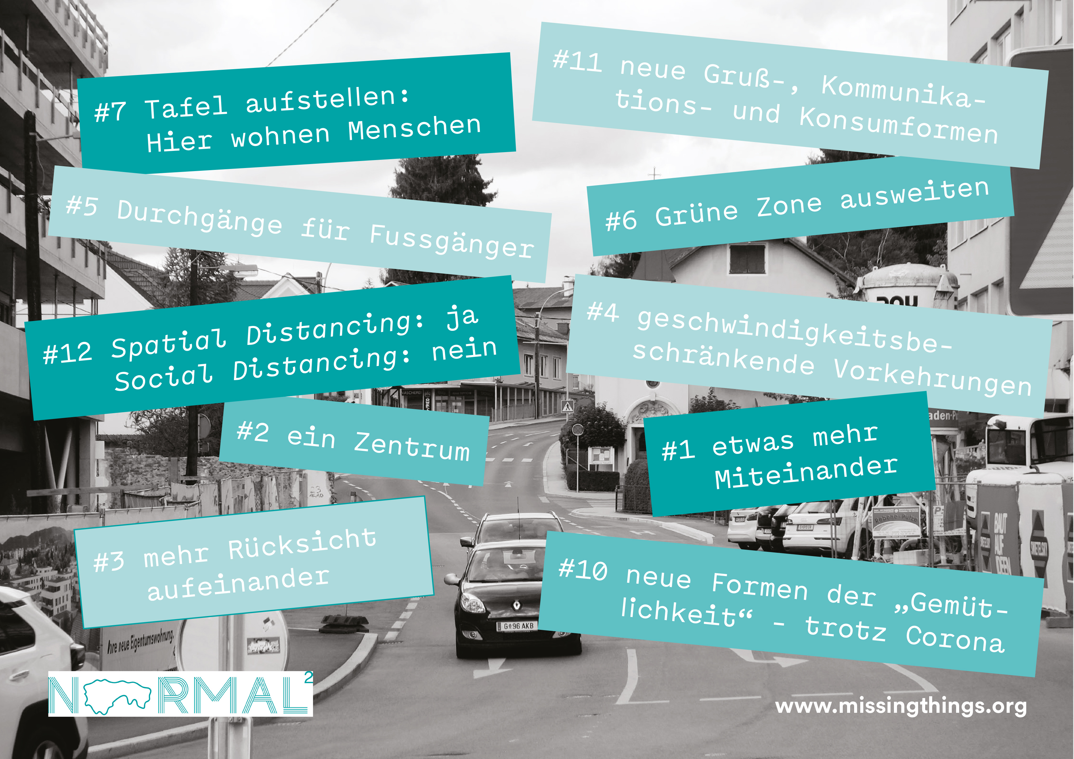 28.01.2021-24.02.2021: How can you define sustainable and future-oriented urban development? “NORMAL – direct urbanism x 4”, initiated by transparadiso, focusses on four districts on the outskirts of Graz. The HDA is accompanying the project with an exhibition held as part of Graz Year of Culture 2020. Responding to current social challenges in urban development, transparadiso developed the method of direct urbanism to facilitate socially-engaged urban planning combining direct action and planning. Urban practitioners orizzontale (I), public works (GB) and Georg Winter (D) were invited to work with transparadisoin four Graz districts: Andritz (north), Waltendorf (east), Liebenau (south), and Wetzelsdorf (west). Between spring 2020 and summer 2021, artists and architects will work together with local residents and organisations to realise artistic urban interventions based on transparadiso’s research.