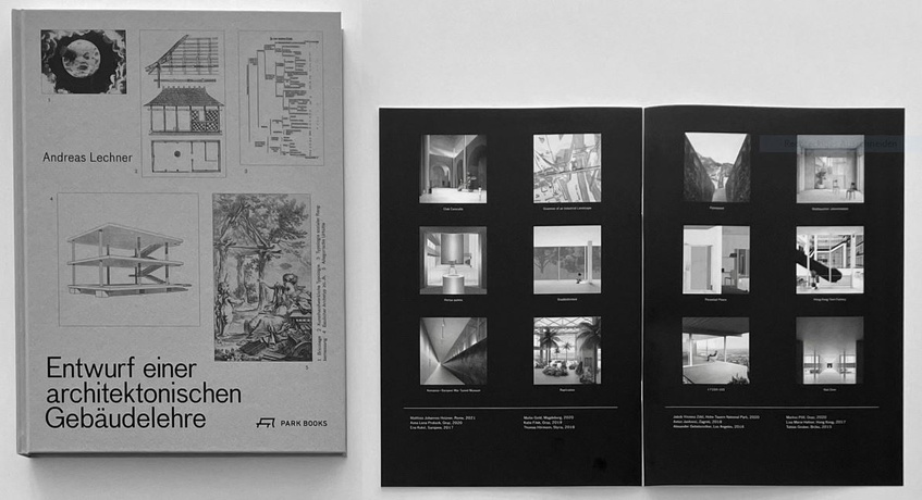 Andreas Lechners Atlas formaler und funktionaler bautypologischer Referenzen wurde 2018 erstmals bei Park Books veröffentlicht und ist nun in englischsprachiger Erstauflage und überarbeiteter und aktualisierter deutscher Zweitauflage erschienen. Das Entwerfen von Gebäuden basiert immer auf einem Wissen über Typologien, die er unter den drei thematischen Überschriften „Tektonik“, „Typus“ und „Topos“ aus unterschiedlichen Perspektiven beleuchtet. In jedem dieser drei Kapitel werden zugleich vier der in Summe zwölf Typologien Theater, Museum, Bibliothek, Staat, Büro, Freizeit, Religion, Einzelhandel, Fabrik, Bildung, Kontrolle und Krankenhaus betrachtet. Die insgesamt 144 ausgewählten Beispiele aus einer Vielzahl klassischer Entwürfe und Bauten erläutern die Grundlagen kollektiven Wissens der Architektur, mit dem sich in den transformativen Prozessen der Entwurfsarbeit stets neue Verbindungslinien ziehen lassen. Alle Beispiele sind mit Ansichten, Schnitten und Grundrissen illustriert, die für optimale Vergleichbarkeit neu gezeichnet wurden. Zusätzlich illustriert ein nun beigelegtes Heft mit zwölf vielfach ausgezeichneten Diplomarbeiten Andreas Lechners Entwurfs-, Lehr- und Forschungsschwerpunkt „Counterintuitive Typologies“. Die 1. Auflage in deutscher Fassung wurde als eines der Schönsten Bücher Österreichs 2018 und 2020 mit der Goldmedaille im Wettbewerb der schönsten Bücher aus aller Welt ausgezeichnet.