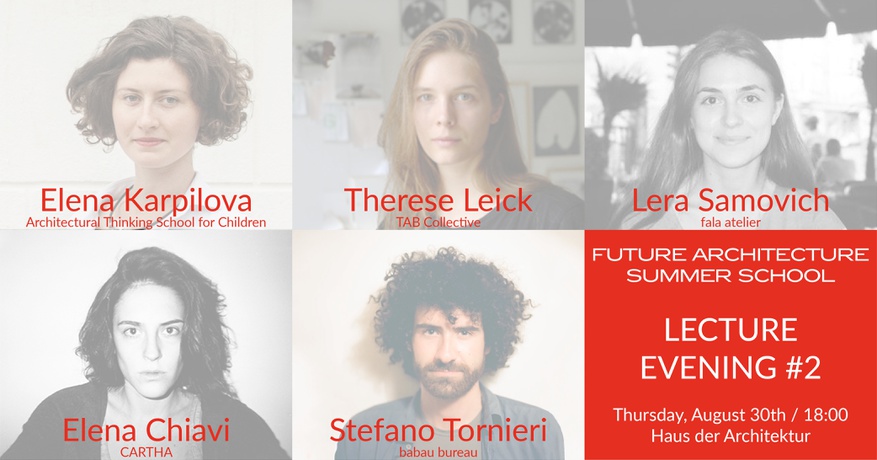 Junge aufstrebende Architekturschaffende, welche die erste Future Architecture Summer School im Haus der Architektur leiten, stellen die Denk- und Arbeitsweisen ihrer Büros/Kollektive vor: