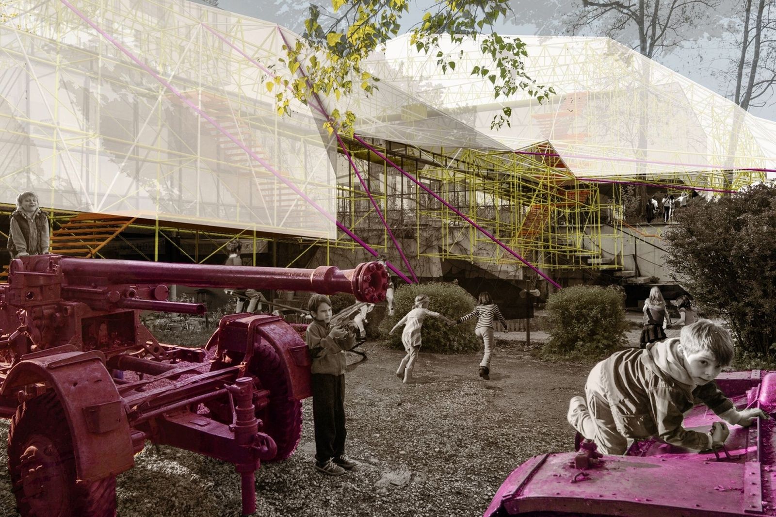 Was ist möglich, wenn ein Ausnahmezustand die Regel wird? Konflikte und Kriege schaffen eine völlig dystopische Atmosphäre mit Verwirrung, Desorientierung und Korruption. Gleichzeitig entsteht eine Chance, die Gesellschaft von Grund auf neu zu denken und ihre kulturellen Wahrzeichen neu zu erfinden. Mit einem Entwurf für das Historische Museum von Bosnien und Herzegowina schlägt Urban-Think Tank zusammen mit Baier Bischofberger Architects ein temporäres Konzept vor, dessen Umsetzung institutionelle und kulturelle Prozesse integrieren soll. Die Architektur soll mit ihrem sozialen und politischen Umfeld interagieren.