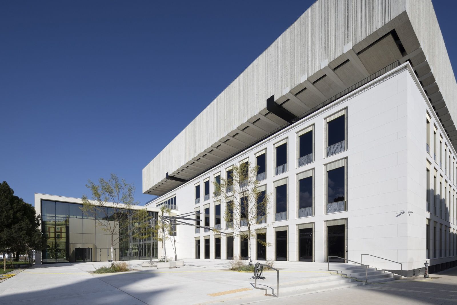 Der Altbau wurde in engster Abstimmung mit dem Bundesdenkmalamt und unter Einbeziehung aller restauratorischen Kompetenzen aufwendig saniert und nach heutigen Baunormen adaptiert. Die historischen Bauteile wurden eingehaust oder, wie die originale Haerdtl-Direktion, komplett aus- und wieder eingebaut. […] Neuanfertigungen, wie die ersetzten Fassadensteine, erfolgten nach dem Vorbild des historischen Bestandes und unter Aufsicht der Restaurator:innen. Auch die bauliche Erweiterung des Altbaus stand unter der Prämisse, Haerdtls Architektur aufzunehmen und weiterzudenken. Die Architekt:innen fanden die architektonische Lösung in einem erweiterten, über dem Gebäude schwebenden Neubau, der zwei zusätzliche Geschosse ergab. Ein Teil des zwischen dem alten Gebäudeteil und dem Aufbau entstehenden Freiraums wurde als Aussichtsplattform mit Blick auf den Karlsplatz gestaltet. Der neue Eingangsbereich mit dem großzügigen Glaspavillon und die Öffnung des Gebäudes mit Restaurant und Plaza hin zum Karlsplatz verleihen dem Wien Museum nun eine starke lokale Präsenz. Herausfordernd an diesem Projekt war insbesondere die (in BIM ausgeführte) Tragwerksplanung, die den großen, architektonisch und statisch komplexen Neubau nicht direkt an den Altbau anschließen lässt, sondern in das ehemalige Museumsatrium „einschiebt“. So wuchsen die nächsten Ebenen in den Hohlräumen des Bestands, ohne ihn zu belasten. Erweitert wurde das Gebäude auch unterirdisch mit neuen Depotflächen auf 1.200 m² unter dem Vorplatz, u.a. für die Grafik- und Fotosammlung."