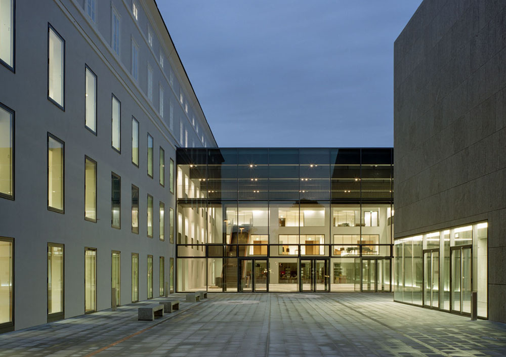 Zum Abschluss der Ausstellung Das Mozarteum. Wandel eines Ortes bietet sich noch einmal die Gelegenheit, gemeinsam mit dem Architekten Robert Rechenauer, das Haus und seine Einbindung in die Lodronstadt, zu besichtigen. Ein besonderer Anlass, denn vor genau 10 Jahren, im Februar 2007 lud die Initiative Architektur zur ersten Begehung, des damals gerade fertig gestellten Bauprojekts ein. Der Entwurf des Münchner Architekten ging 2002 als Sieger in einem EU weiten Wettbewerb hervor. Das ehemalige Paris-Lodron-Palais zeigt sich heute, mit seinem Vorplatz und der großzügig gestalteten gläsernen Vorhalle, als offenes und einladendes Gebäude. Es beherbergt 110 Seminar- und Unterrichtsräume sowie 20 Übungsräume und mehrere Veranstaltungssäle. Robert Rechenauer hat über seine langjährige Beschäftigung mit diesem Ort vieles erfahren und zutage gefördert. Sein Wissen um diesen Ort und seine Umgebung wird bei diesem Rundgang einfließen.
