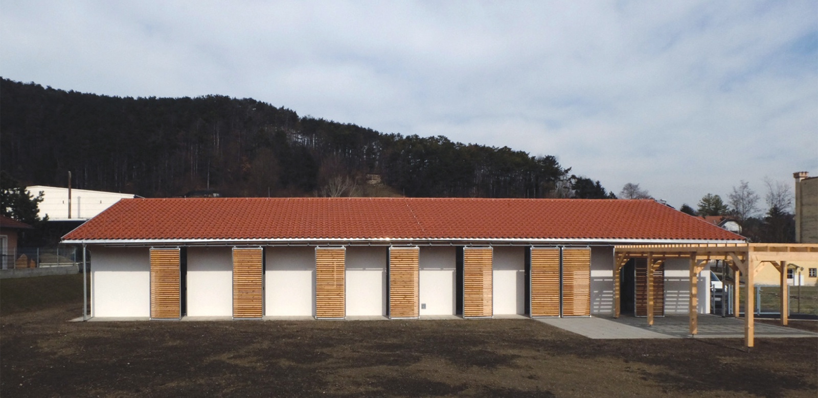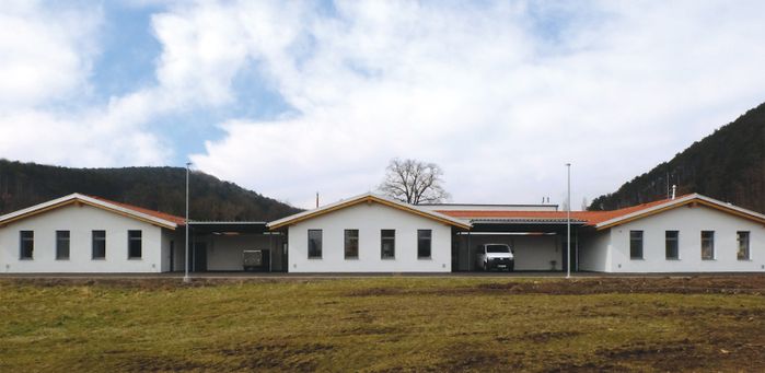 Entstanden ist ein ebenerdiger Bau mit ca. 1000 m² Nettofläche in einer Abfolge von 4 Häusern und Innenhöfen. Um innerhalb einer so großen Anlage Wohnlichkeit zu gewährleisten und den einzelnen Arbeitsgruppen individuellen Raum zu geben, war es dem Atelier Hochstraße wichtig, das Raumprogramm in funktionale Einheiten zu gliedern. Dies wird durch einzelne Baukörper in angemessener Dimensionierung, die dem Maßstab ländlicher Bebauungsstrukturen entsprechen, erreicht. Das Projekt wurde für den Landespreis für vorbildliche Bauten in Niederösterreich eingereicht.