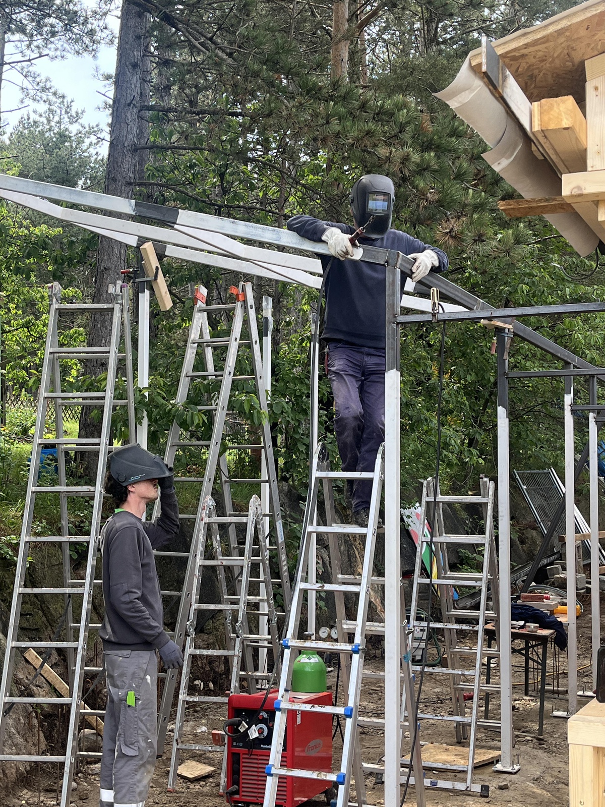 Im Zentrum dieses Landschaftsparks steht eine alte Holzbaracke, die seit den frühen 1980er Jahren Vereinsheim und Basis für das Symposion ist. Ursprünglich als Bauhütte auf einer nahegelegenen Großbaustelle genutzt, wurde sie an ihren heutigen Standort versetzt und dient seitdem als Ausstellungsraum, Unterkunft für Künstler:innen sowie als sozialer Treffpunkt mit Gemeinschaftsküche. Doch Jahrzehnte von Witterungseinflüssen, Schädlingsbefall und der exponierten Lage haben deutliche Spuren hinterlassen – das Gebäude war bereits stark sanierungsbedürftig und stellte den Verein vor große infrastrukturelle Herausforderungen.