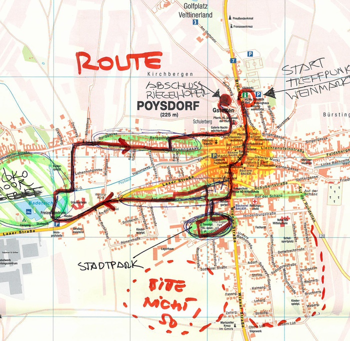 Ein interaktiver „Wahrnehmungsspaziergang“ – in der Tradition des Schweizer Soziologen Lucius Burckhardt - soll andere und neue Blickwinkel, Ausblicke und Wertigkeiten erschließen. Poysdorferinnnen und Poysdorfer sowie interessierte Gäste sind herzlich eingeladen, den Ort mit allen Sinnen zu erkunden. Beim gemeinsamen Gehen, Betrachten und Sprechen entstehen Ideen, die der Gemeinde neue Impulse geben können.