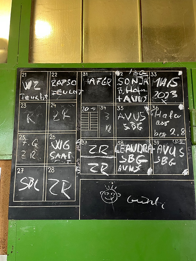 Bitte nehmen Sie sich eine Jause und eine Sitzunterlage mit, wir werden auf dem Weg vom Schüttkasten zum Silo eine kurze Rast und Essenspause machen. Bitte beachten Sie: Der Aufzug im Silo bietet nur max. zwei bis drei Personen Platz, alle anderen haben einige Stufen zu gehen. Auch der Schüttkasten ist nicht barrierefrei (kein Lift) und wird für gehbeeinträchtigte Personen möglicherweise schwierig. Wichtige Anmerkung: Aufgrund der beengten Situation im Silo ist die Gruppengröße mit max. 20 Personen limitiert.