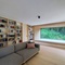 Im Zuge des Umbaus wurden Garage wie Satteldach entfernt und so präsentiert sich das Gebäude heute als klare Kubatur mit Flachdach. Die Tragstruktur blieb erhalten, wiewohl die verwinkelte Grundrissstruktur aufgelöst und umorganisiert wurde. Im Obergeschoss wurde das Gebäude um Erker erweitert, die nun wie Kojen anmuten. Sie dienen als Gästebereich, Sitznische oder Loggia und eröffnen Blicke in die Umgebung. Die Kojen aus Brettsperrholz wurden über das Dach mithilfe von Zugbändern miteinander verbunden und gleichen so die Lasten aus. Sie heben sich durch eine dunkle Blechverkleidung bewusst von der schlichten Weißtannenfassade ab.