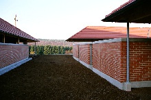 sind mächtige Walmdächer und Gartenmauern aus Klinker. Die zehn
