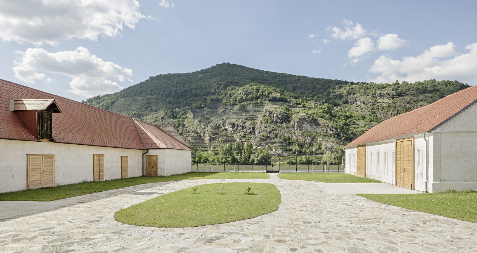 Unaufgeregt, minimalistisch und nachhaltig haben Karl Langer und Georg Schumacher alle erforderlichen Maßnahmen in die idyllische Kulturlandschaft eingefügt, die sich nun dem bestehenden Orts- und Landschaftsbild wie selbstverständlich unterordnen.